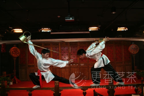 接下来请欣赏更香茶艺队的双胞胎兄弟为我们带来的太极壶艺《中国茶•功夫》。