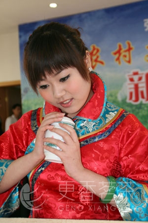 孩子,该敬茶了。第一杯敬你的公公,碗里是深深的祝福;第二杯敬你的婆婆,碗里是满满的孝顺;第三北给你的丈夫,碗里是浓浓的情意。