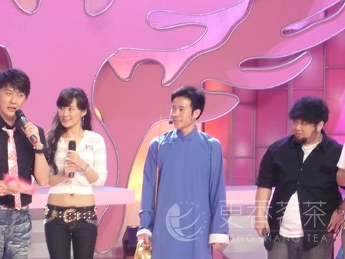 更香茶艺表演队茶艺老师银汉晴参加广东卫视(天使明星汇)录制,图为银汉晴与中国歌手韩东,韩国明星郑在娟还有广东卫视主持人一起秀茶艺,此节目将与5月底在广东卫视播出。