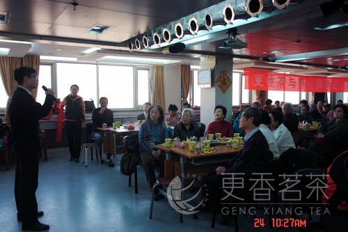 1月26日,广内街道西便门西里社区100多位老党员欢聚一堂。国家高级评茶师、更香公司市场部主管王法东感谢大家对更香茗茶的支持,并分享了茶与养生的日常知识。活动最后,还赠送在场每位一盒俞氏养生茶