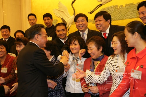 中共中央政治局常委,十一届全国人大常委会委员长吴邦国(前排左六)与全国人大代表俞学文(后排左四)以及全体与会人员合影