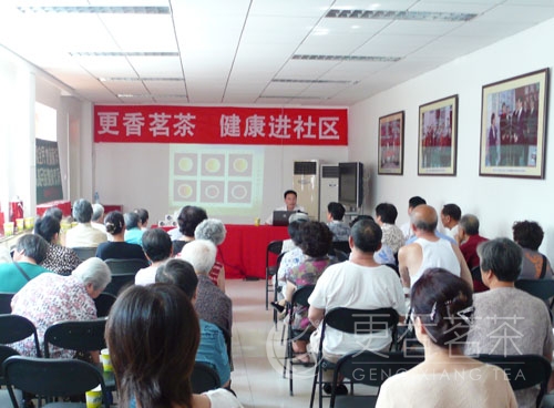 为更好的普及人们对茶的认识,了解茶与养生的关系,让茶文化的传播从社区做起。7月9日上午9时,更香公司与车站西街15号院居委会合作,在车站西街15号院举办了“茶为万病之药,勿忘饮茶养生”的主题系列的讲座。车站西街15号院的众多居民参与了此次活动。