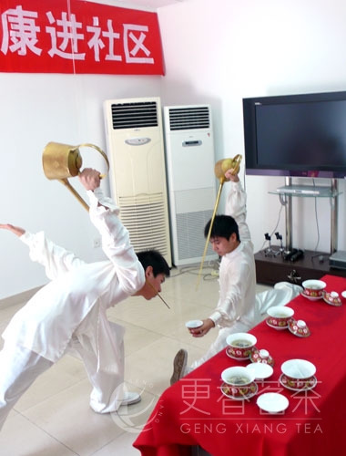 现场的社区居民在品香茗、丰富茶知识的同时,还观看了更香茶艺师精彩的茶艺表演,最后更香公司赠送在场的每人一盒公司新开发的产品“俞氏养生茶”。