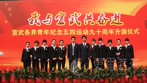 为了让青年员工铭记历史,继承五四精神,宣武区团区委于5月4日在育才学校举行的“我与宣武共奋进--宣武各界青年纪念五四运动九十周年升旗仪式”。更香公司团总支积极响应号召,组织10名优秀团员代表参加,公司副总经理兼党支部书记张晓芳同志作为“宣武区杰出青年拔尖人才”参加了活动。